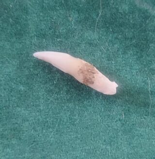 The Cat Claw. Amazingly, despite this being one of the smallest and lightest Bones in my set, it still comes up in a reading when needed. Similar to the Cat Tooth and Cat Charm, this signifies someone, usually a woman, who is “clawing” at your life in a vexing way, but is more of an annoyance than a real danger. Just as this claw had been shed, you should consider shedding this person from your life.