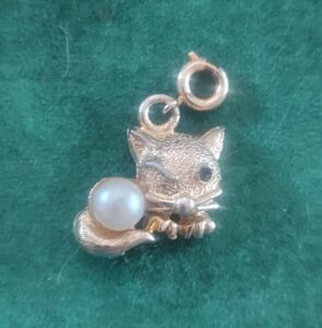 The Cat Charm. I have a few Bones that I’ve had for a very long time. I didn’t realize that so many of the crazy and weird little things I’ve been saving since childhood would someday find a purpose in helping Spirits communicate with the living. The Cat Charm (along with the Mouse Charm, also in my set, and a few other animals lost to the void) was part of a bracelet I received as a gift when I was about 5 years old. This Bone has varied meanings, depending on the person receiving the reading. The Cat Charm usually signifies a woman, or someone who identifies as female, in the querent’s life who doesn’t treat the person very well. It could be someone who is back-stabbing and manipulative, or jealous of the person’s success and therefore tries to put obstacles in his or her way. She may be a gossip, or two-faced – friendly to the person’s face, but who tears the person down behind her back. This is an especially potent symbol when it refers to the person’s boss, parent, or some other woman with authority over the person. The other meaning comes into play when the person receiving the reading is a strong “cat person.” You know who you are. In that case, this Bone represents the comforts and support of a loving female friend or companion (or it could be a literal cat, if you feel especially supported by one), whether already present in your life, or soon to slink into it on little cat feet.